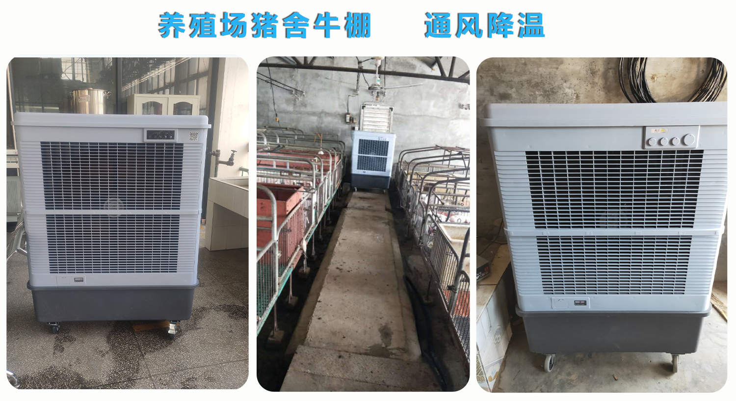 到了夏季,养殖场温度偏高,通常是采用敞开式或有窗户建筑结构,室内的气温基本是受养殖场室外的气温影响。如果温度处理不妥当,会影响牲畜的生长情况也可能引起不同程度的病发,为减少高温对猪群的影响,利用环保空调湿帘冷风机对猪舍进行换气降温,养殖场内的高温湿热及时排出去,同时有新鲜空气的持续注入,使得室内非常清爽,让养殖场变得异常舒适。雷豹移动冷风机MFC18000D凭借大风量、广覆盖、制冷通风一体的核心优势,成为破解养殖场夏季高温难题的优选解决方案。