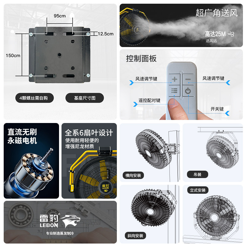 雷豹EF3625H以“精准送风、安装灵活、节能耐用、安全适配”为核心优势,完美契合工厂车间岗位降温通风的场景需求: