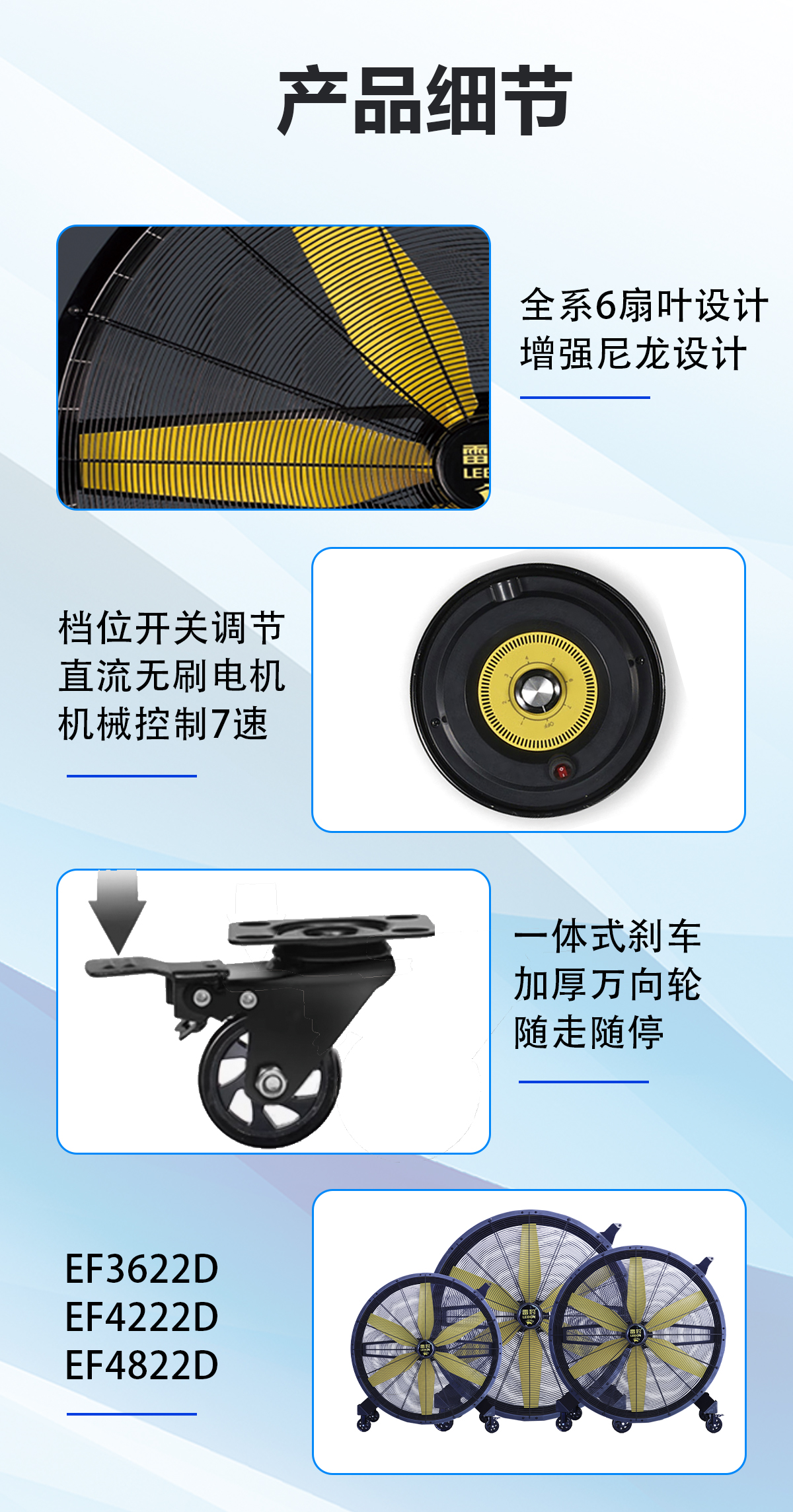 4.全系6扇叶设计,使用耐用轻便的增强尼龙材质