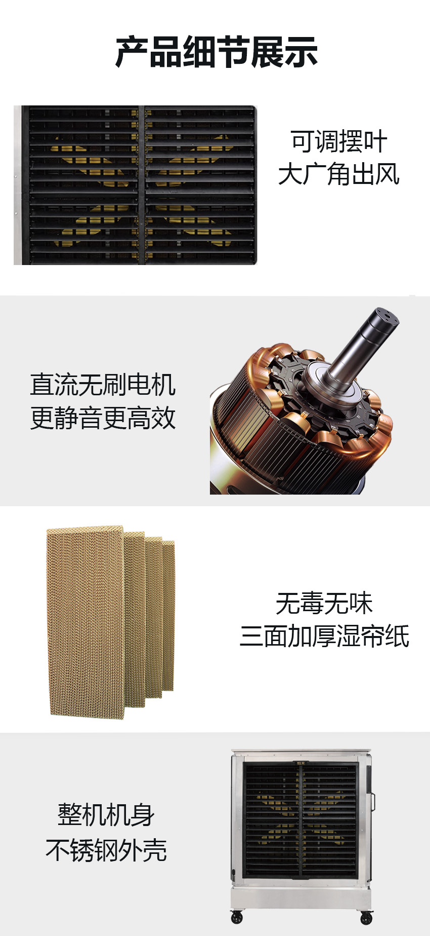 3.全新升级直流无刷电机,高效稳定,持续出风