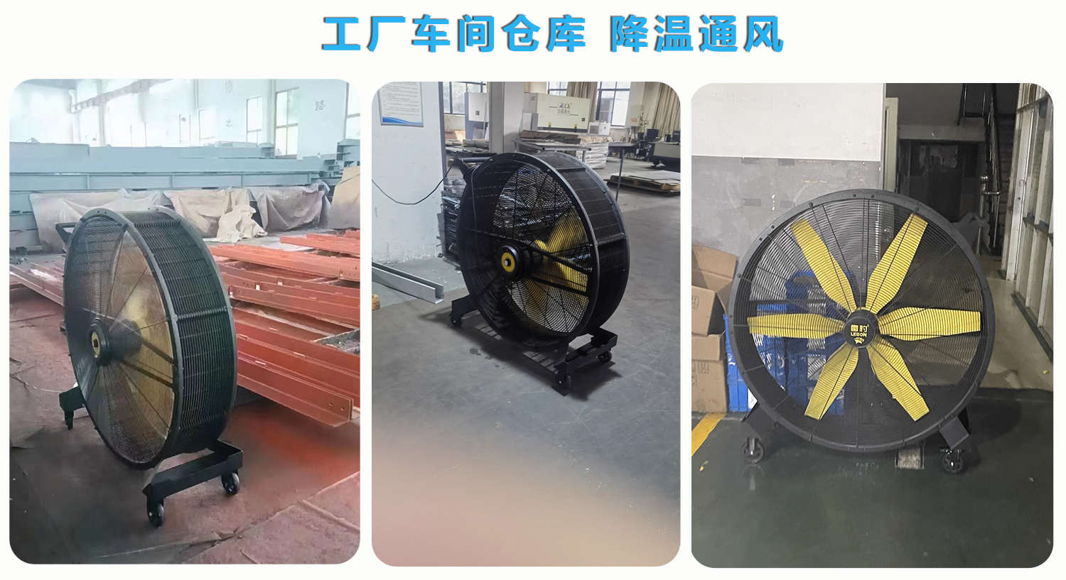 2. 超大覆盖强通风,净化作业环境:运行过程中通过强劲气流加速空气循环,快速排出车间仓库内的高温污浊空气、粉尘及机械废气,有效改善室内空气质量。